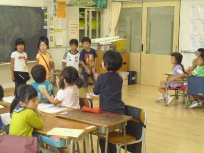 日本語の時間に学習した、雨ニモマケズの詩を、今日はグループで暗唱していました。