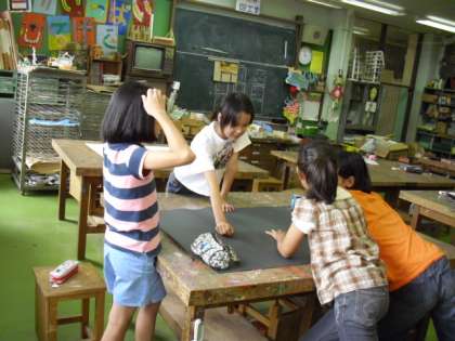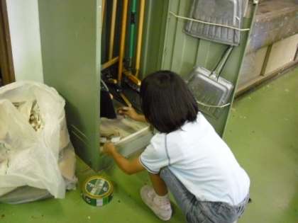 整美委員会の人たちは、掃除ロッカーの中を掃除したり、廊下に貼るポスターを選んだり、職員室前の「子どものこよみ」を作ったりしています。子どものこよみの今月のテーマは「ハロウィン」だそうです。楽しい感じを出すように工夫していました。