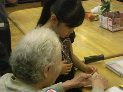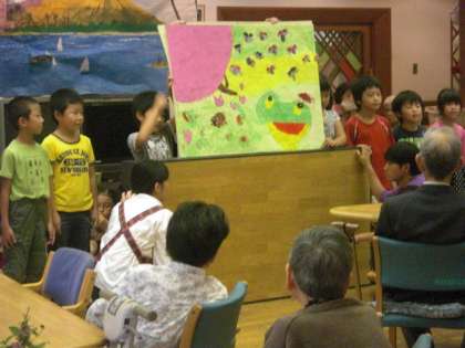 子どもたちの読み聞かせや合唱を聴いてくださる施設利用者の方々の