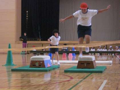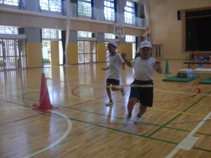 今日は体育館体育でしたが、体育館の端から端まで使って