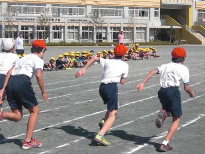 兄弟学級の1年生が、最後の練習の参観と応援に来てくれました。