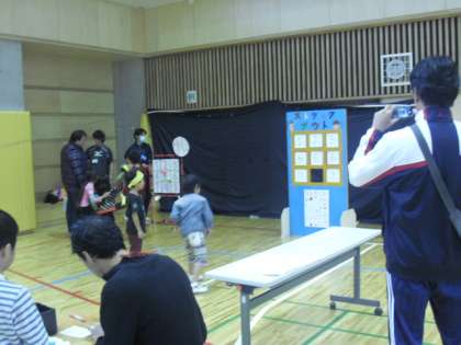ストラックアウト、ボウリング、魚釣りなどのゲームコーナーやプラ板、カップラーメンカーなどの創るコーナー、レストランの食べるコーナーに分かれ、お店のお当番等も頑張っていました。
