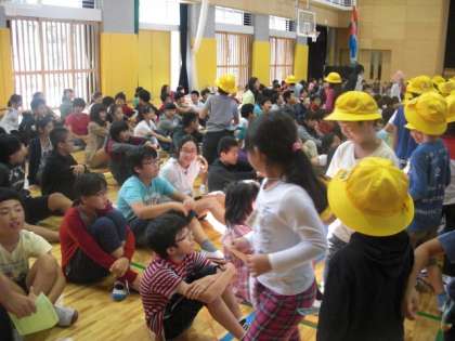 今朝の全校朝会の後に、1年生がその6年生一人一人に
