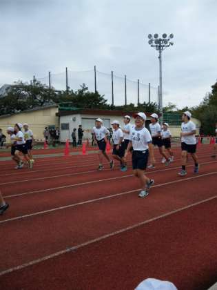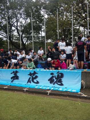 総合運動場での連合運動会、芦花魂の横断幕を掲げて声援を受けながら皆健闘しています。
