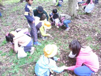 どんぐりを手にした子どもたちのところでは、