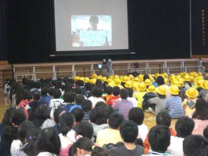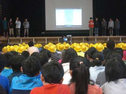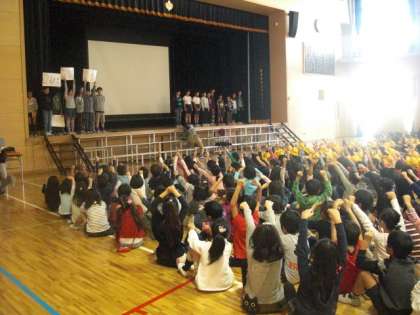 今朝の児童集会は、図書委員会の発表です。