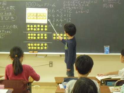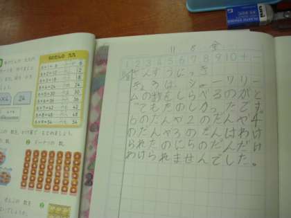 まとまりのいくつ分という見方ができればかけ算を使うと便利ということを見つけて、2年生は様々な段を用いて答えの見つけ方を発表していました。最後に算数日記という形で学習感想を記録に残し、6の段以外でも解決できた発見についてまとめていました。