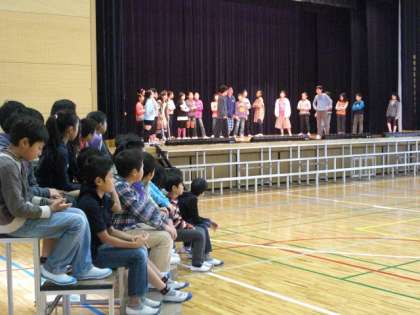 体育館いっぱいに広がる声の大きさを確かめたりしていました。