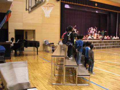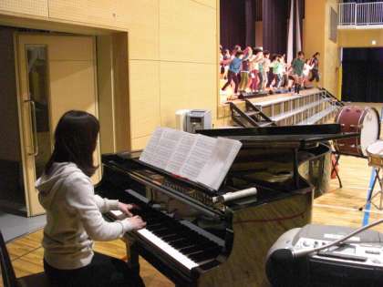 体育館では、演出に欠かせない音楽効果の指導ありで