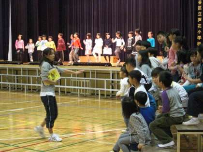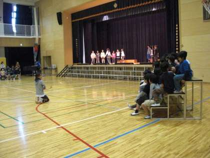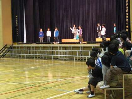 森の動物、おおかみやたぬき、うさぎが登場する劇です。