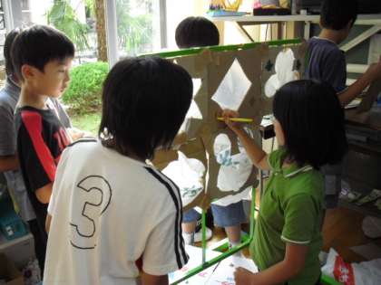 明日にせまった子どもまつりの準備もいよいよ最終段階です。どこのチームも準備に大わらわです。この前日の準備をどう行うかによって明日の成功が決まります。