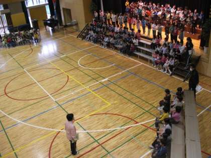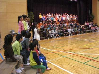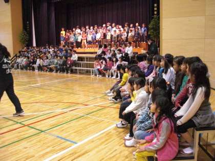 全学年で一番人数の多い148名が、舞台と両袖の山台を