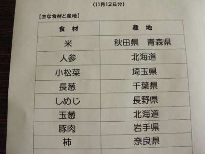 11月12日の給食