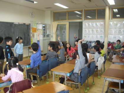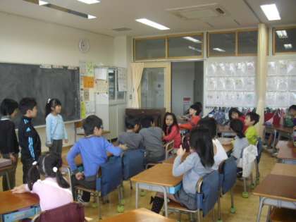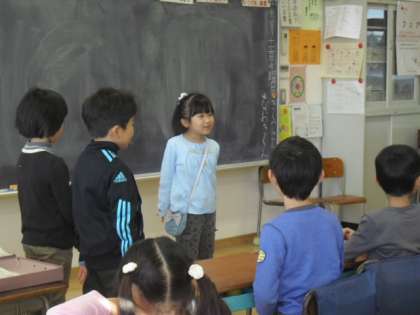学校では授業時間だけではなく、朝や帰りの会の時間を使っても様々な活動をしています。2年生では昨日のできごとについて、皆の前で話すスピーチ活動が行われていました。発表者の話をよく聞いて、質問もします。よく聞いていないと質問もできませんね。