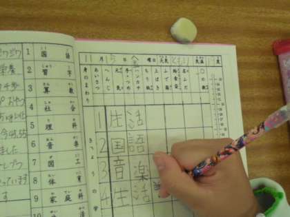 ひかり学級は2学級です。もうひとつのクラスでは、朝の会の流れを詩しっかり自分で記入し確かめていました。今日の学習も頑張ってくださいね。