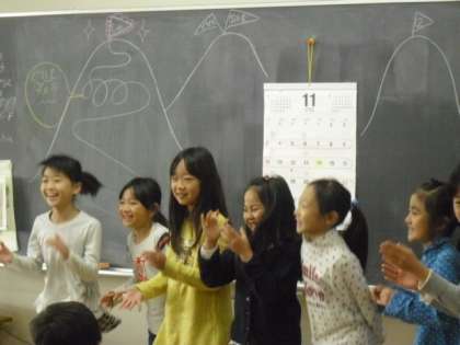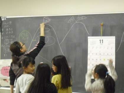 2年生のクラスでは、今週一週間丁寧な文字で宿題を提出できた友だちが、クラスの皆にその「こつ」を伝えていました。先生が山のゴールを目指して頑張る途中に何度か挫折し転がることもあるけれど、でも何度も乗りこえ目標目指して進んでいくことを図に書いて例示しながら、クリアできた子どもたちが一人一人話してくれました。来週は、ゴールできる子どもがまた増えそうですよ・・・・。