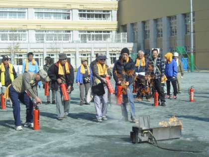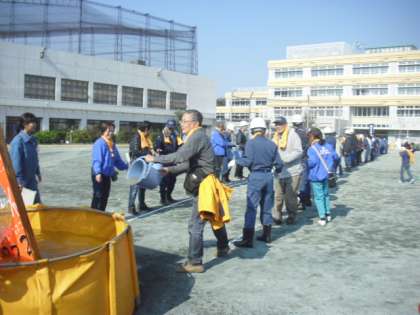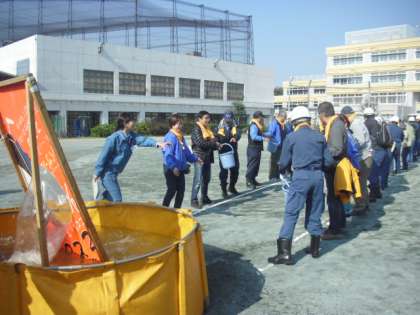 第2部は合同消火訓練でした。消火器、バケツリレーで初期消火に努めました。