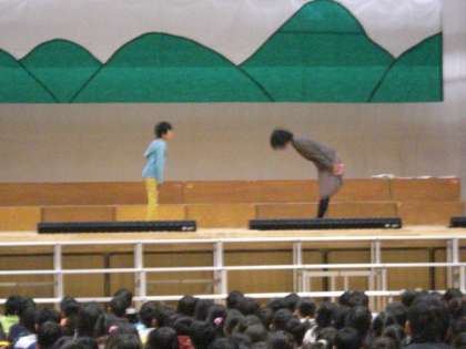 舞台から、みんなにそれぞれのあいさつを披露してくれました。