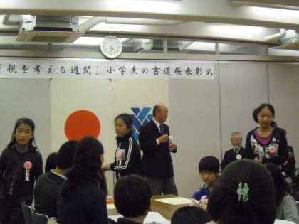 25校の小学校から3574点の出点があり、芦花小の6年生も2名、入選、佳作に選ばれました。今日はその表彰式が梅丘パークホールで行われました。また朝会でも紹介したいと思います。おめでとうございます!