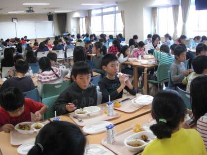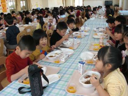 そこで4年生全員が給食を楽しみました。(写真:左)