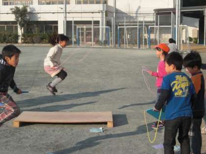 今朝も、始業前に校庭になわを持って駆けつける子どもたち。
