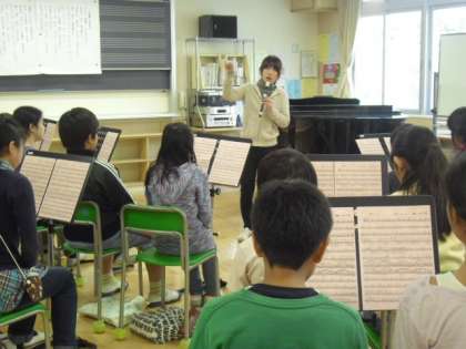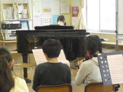 廊下に素敵なカノンの曲が流れてきました。音楽室で5年生が笛の練習です。先生がいくつかの演奏パターンを示し、各自が自分の演奏方法を選んで演奏していました。心も一つになって、演奏していました。