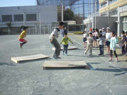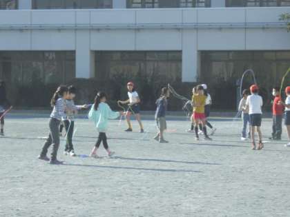 主事さんお手製のマシーンパワーが全開、子どもたちが空中での感覚を体感しながら二重跳びにハヤブサにと難しい技の練習に励んでいます。休み時間の検定にも進んでチャレンジ・・・今週の目標の「寒さに負けるな みんなでなわとび」の目標は、十分に達成できているようですよ・・・。