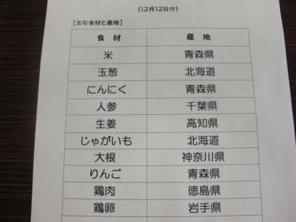 12月12日の給食