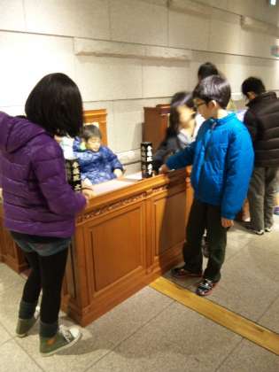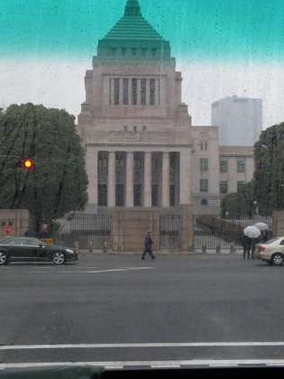 官庁街を車窓見学した後、国会議事堂に到着しました。これから参議院特別体験プログラムで審議の擬似体験もします。