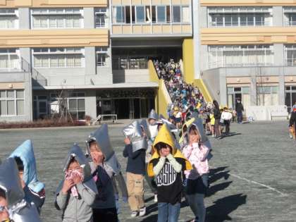 今まで5分台で避難できていましたが、今日の小学校は7分7秒。