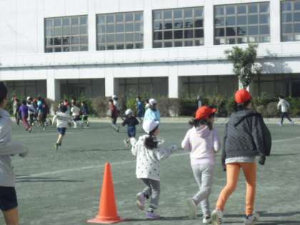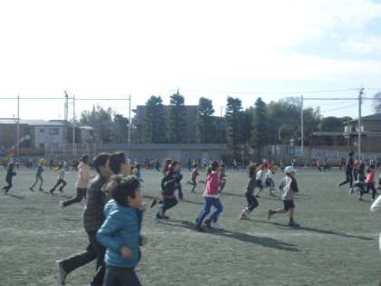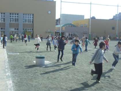 休み時間の合図と共に校庭へと飛び出した子ども達は、今日も音楽に合わせ、自分のペースで持久相タイムに取り組んでいます。持久走タイム終了後には、呼吸を整え、各自の遊びに入りますが、「今日は○週走ったよ〜」と元気な報告を私にもしてくれました。今週の週目標は「寒さに負けるな!元気に挨拶!!元気に持久走!!」ですが、みんな目あてに向かって取り組んでいます。