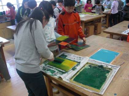 4年生3学期の図工は、木版画「彫って刷って」です。