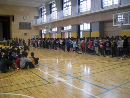 美しい調べが体育館にいる子どもたちと教職員を