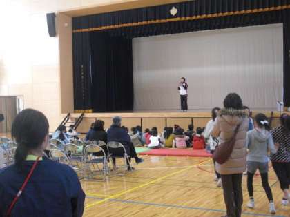 写真:上…小島先生の軽妙な話術で開会式が始まりました。