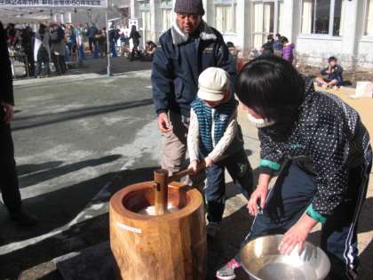 粕谷会の方々にご協力いただき、もちつきがありました。(写真:上)