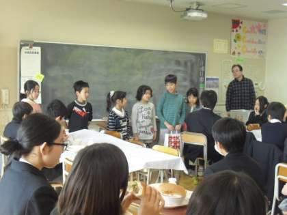 コンフィチュール作りのお礼の蒸しパンを、中学2年生に私に行きました。お手紙をつけ、一人ひとりに渡しました。中学2年生が小学生達に「かわいい」と声をかけてくれ、3年生児童も喜んでいました。