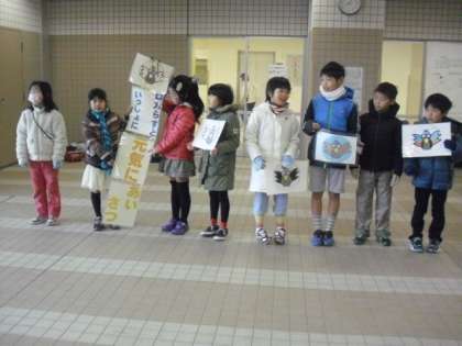 今日のあいさつ隊は3年生、笑顔を付けての声かけでした。代表委員のユニセフ募金の呼びかけにも、子どもたちが持参した硬貨の入った袋を入れてくれました。いつもご協力本当にありがとうございます。