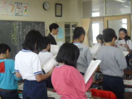 4年生の教室で国語の時間に「じゃんけんの仕組みについて」の説明文の読み取りの学習をしていました。「すっきりまとめて言えないかな・・・」と「すっきり」の中身について話し合い、じゃんけんのルールやよさについてまとめていきました。先生も子ども達に読み取りの力を付けるために事前の準備をしっかりして指導していました。