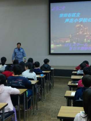 JFEスチール東日本製鉄所につきました。ビデオを使って鉄ができるまでの学習をしました。これからバスに乗って構内見学です。構内は写真撮影禁止なので、しっかり目と耳を使って学習を進めてきます。