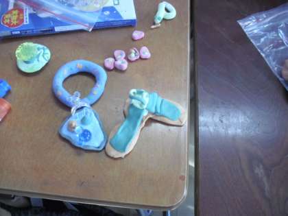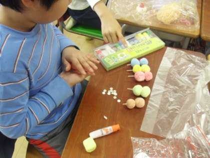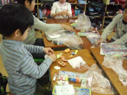 紙粘土に絵の具を混ぜて・・・・、小さな小さなかわいい宝物がたくさんできました。