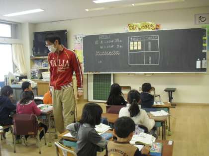 算数の時間に、「ちがいはいくつか」ひき算の問題解決場面を考えていました。自分の考えをノートに図や式で表します。先生に小さな声で説明して・・・・、自信をつけて全体の前で発表していました。上手に説明できましたね。