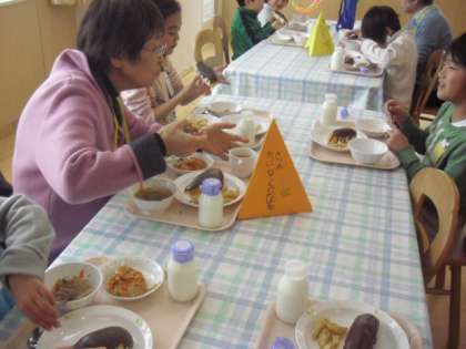 給食を一緒に食べ、会話の花を咲かせていました。