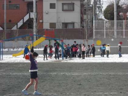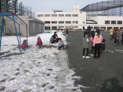 水曜日の朝、”みんたの”も、雪が残る校庭で