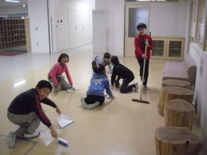 芦花小学校では、クラシック音楽とともに、お掃除タイムが進んでいます。それぞれの持ち場を、美しい音楽を聴きながら、みんなできれいに・・・・心のお掃除も一緒にできるお掃除タイムです・・・。