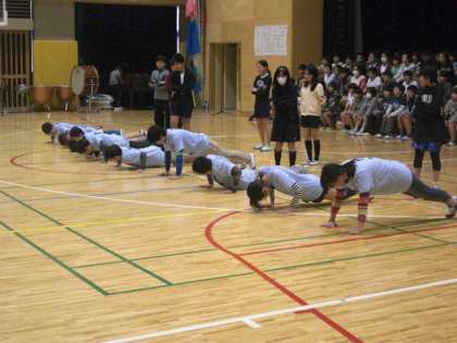 中:連合運動会で3クラスとも記録を出した長なわ跳び