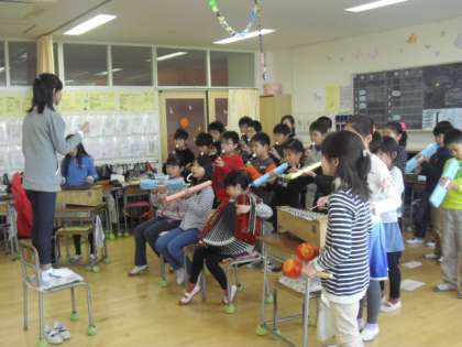 今日のゲストさんが残念なことに来れなくなったので、準備を進めていた交流会に参加してきました。ゲームや歌、合奏など、自分達で決めたプログラムを子ども達の司会で進めました。一緒に説明を受けながらゲーム、歌にも参加し、とても楽しいひと時を私にもプレゼントしてもらい嬉しかったです。みんなどうもありがとう・・・