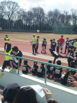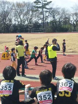 25メートル走、ボール投げ等競技が進行中です。好タイムが出ています。