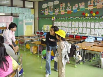 水曜日の朝は、子どもたちが「主役」です。ここでは、たくさんのかかわり合いがあります。1年生と6年生は「なかよしパートナー」です。一人一人がパートナーさんをもっています。少し遅れてきた1年生に6年生がお世話に走ります。するとすぐにパートナーさんが駆け寄ってきました。さすがパートナーさん。相手の性格もよくわかっているようで、お世話の仕方が違います。1年生にとっては頼もしい6年生ですが、このかかわり合いは6年生にも意味があります。それは「自己有用感」を味わうことができるからです。自分が役にたっているという感情はとても大切なことです。「役立つ人になりたい」これはキャリア教育においてもそうです。3年生と4年生の「きょうだい学級」においても同じようなかかわり合いがあります。