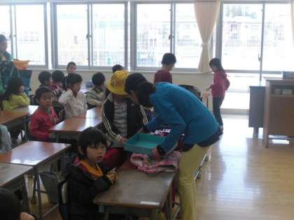 1年生と同じ高さの姿勢になって、丁寧に教えてくれていました。