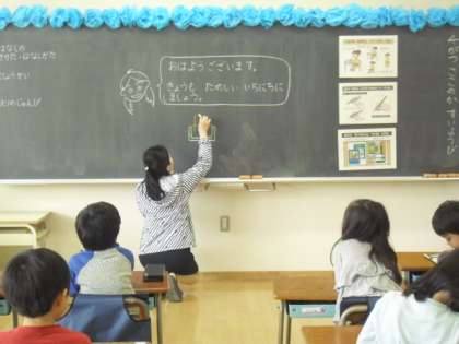 手のあげ方、あいさつの仕方、机のそろえ方など、集団で生活する上でのきまりについての学級での指導をしていました。1つ1つ学習しながらたくさんの友だちと協力し合って気持ちよく生活していく上でのルールを構築していきます。